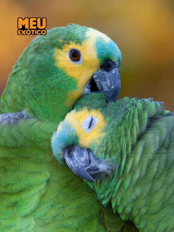 Dois papagaios comendo grão em cima de tronco de árvore. Macho ou fêmea? Determinar se um papagaio é macho ou fêmea é uma tarefa difícil. Essa ave não apresenta diferenças marcantes entre os sexos. Além disso, os órgãos reprodutores são internos, complicando ainda mais a identificação. Há algumas dicas para tentar adivinhar: os machos geralmente são maiores que as fêmeas. Já elas costumam ser mais agressivas e menos dóceis. Porém, para ter certeza, só mesmo levando a ave a um veterinário, que poderá verificar características mais sutis. Reprodução Outro ponto interessante dos papagaios é que eles são monogâmicos e muito carinhosos! Geralmente, atingem a maturidade sexual entre 2 e 3 anos. Então, o macho corteja a fêmea escolhida para a reprodução. Geralmente, ela bota três ou mais ovos, que eclodem em aproximadamente um mês. Após 60 dias, os filhotes deixam o ninho e passam a explorar o mundo. Muito amorosos e fiéis, essas aves, quando perdem o parceiro, dificilmente escolhem outro, vivendo sozinhas até o fim da vida! Essa é uma das curiosidades sobre papagaios mais romântica
