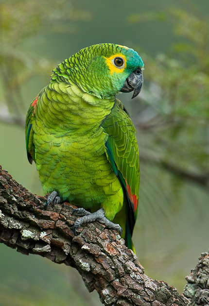 Papagaio no galho de uma árvore. Além de sua beleza impressionante, essa ave cativa os tutores também por sua capacidade de reproduzir a fala humana. Ela também tem uma facilidade incrível para aprender truques. A seguir, você aprende tudo sobre papagaio! Tudo que você precisa saber sobre o papagaio! O papagaio é um simpático pássaro verde com fama de falador. Sua popularidade é tanta — quem não se lembra do imortal Zé Cariosa? — que ele foi escolhido como símbolo do Brasil. Abaixo, conheça a fundo as características da ave! Nome popular e científico Essas aves pertencem ao gênero Amazona. Você sabia que esse gênero tem mais de 30 espécies e que 12 delas estão aqui no Brasil? Anote aí para saber tudo sobre papagaio! O exemplar mais conhecido por aí, falando de tudo e discutindo a relação com o tutor, é o Amazona aestiva, conhecido como “papagaio-verdadeiro”. Também é possível encontrar outras espécies domésticas, como o papagaio-do-mangue (Amazona amazonica) e o papagaio-moleiro (Amazona farinosa). As diferenças entre eles são poucas. Todos se destacam pela beleza e pela graciosidade! Além disso, todos são zigodáctilos, ou seja, têm aqueles pezinhos engraçados com dois dedos para frente e dois para trás, superadaptados para agarrar a comida! Características físicas Os diferentes tipos de papagaio guardam algumas características comuns. Eles são aves médias, atingindo entre 30 e 40 cm. A cor predominante é o verde. Geralmente, eles apresentam manchas amarelas, laranjas e azuis, que dão um charme irresistível! O bico é uma das características mais marcantes (e fofas!) dessas aves. Ele é tortinho e muito forte, para conseguir quebrar coquinhos e arrancar cascas de árvores com facilidade. Isso contribui para deficiências nutricionais e problemas como obesidade. O melhor, portanto, é oferecer os chamados alimentos extrusados, que são rações balanceadas, completas. Está gostando de saber tudo sobre papagaio?